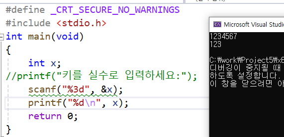 scanf 에서 폭을 %3d를 하게되면 처음 3개숫자만 받게된다.