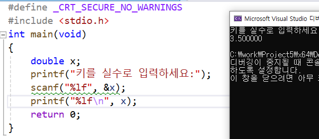 ///소수점이있는 실수를 입력받을떄는 %f가 아니라%lf로 입력을 받아야 제대로 나온다.///(scanf에는 써야하지만, printf엔 생략가능.)