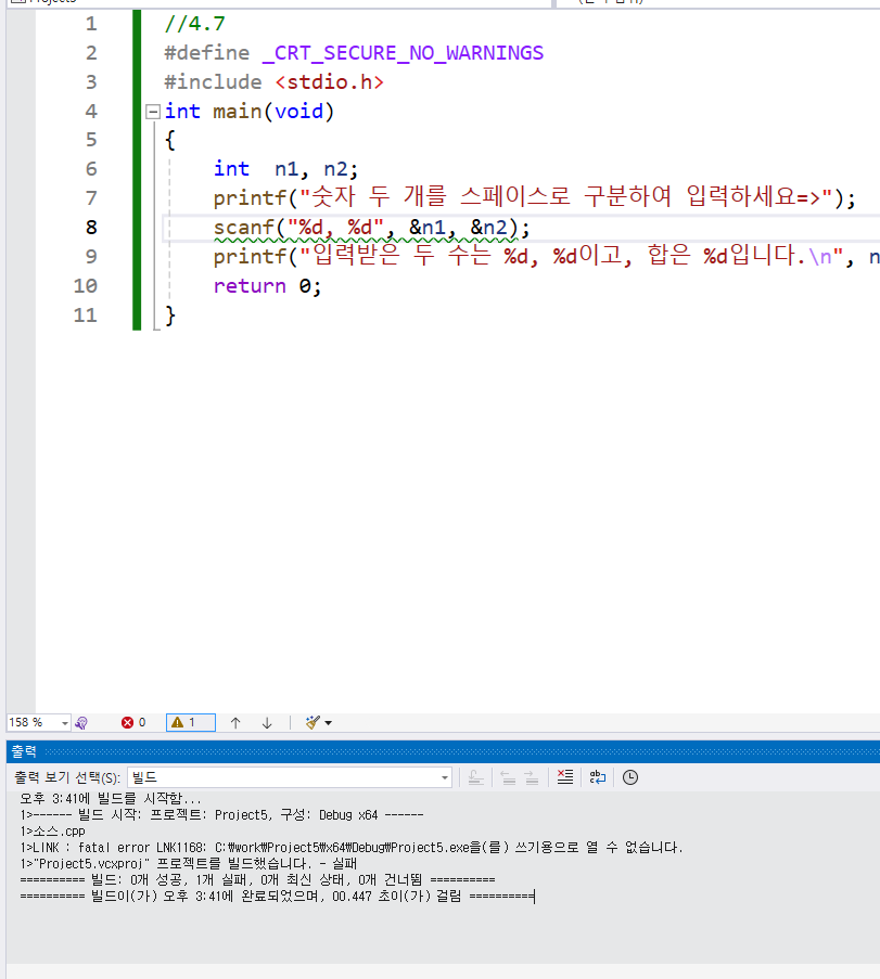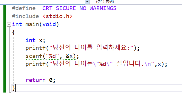 //(scanf함수를 visualstudio 에서 쓰려면 처음부분에#define _CRT_SECURE_NO_WARNINGS를 쓰면 에러를 방지 할 수 있게된다.)//