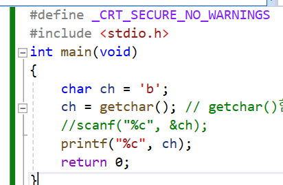 문자 하나를 입력받을떄 scanf(%c) 로 받던가, ch = getchar(); 둘다 써도 상관X