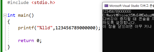 이렇게 큰 수를 저장할떄는 lld(longlong int) 를 쓰면 저장된다.