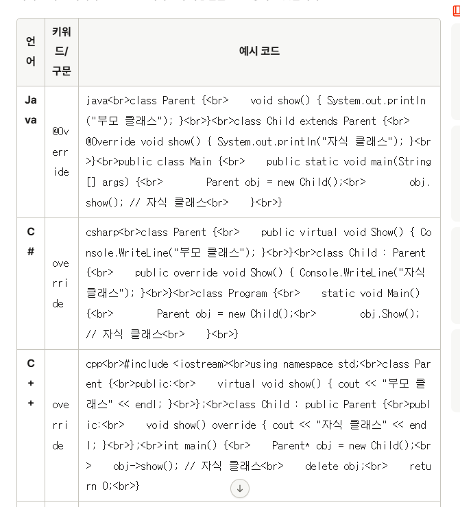 다른언어에서 override사용법을 알려달라고 해보았다.
