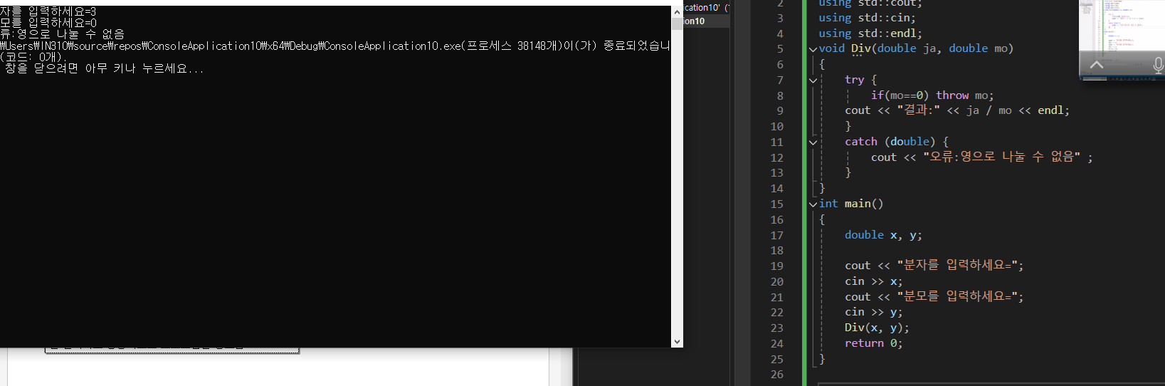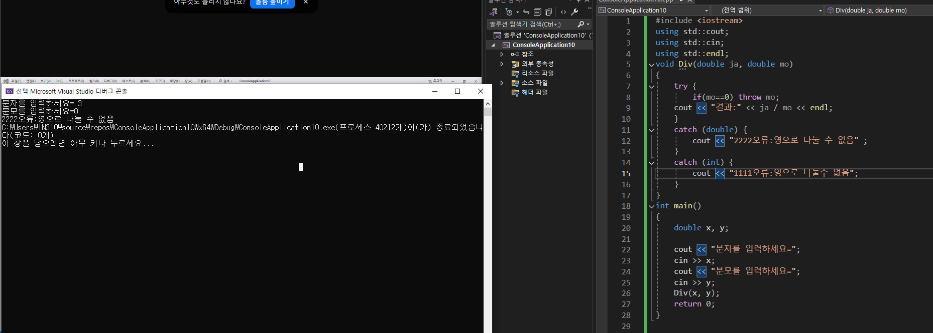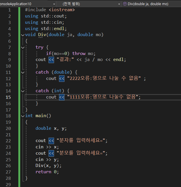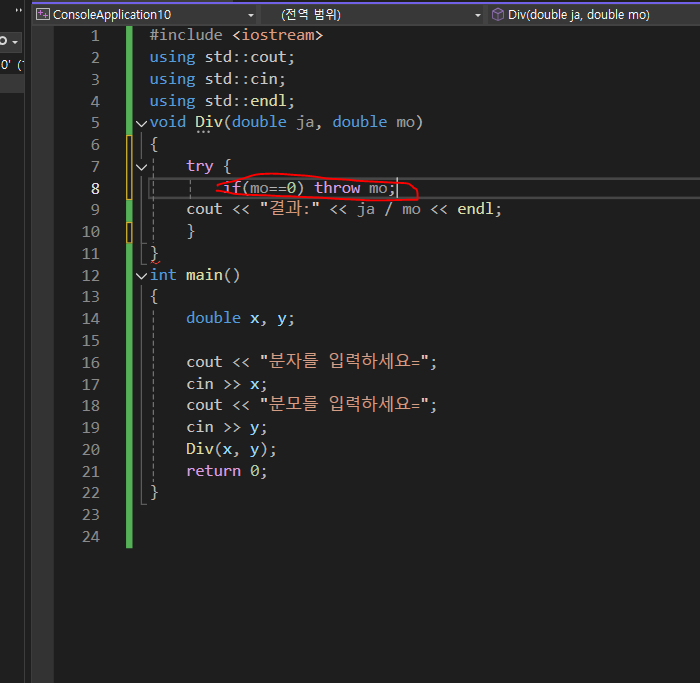 2단계:예외값을 던지는 단계(throw쓰기)