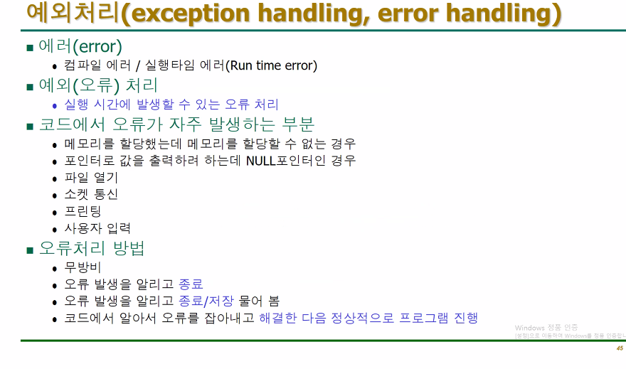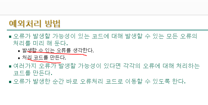 프로그래밍후, 오류를 예상하고, 오류가 나지않게 하는 절차