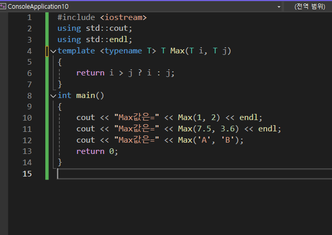 cout << "Max값은=" << Max('A', 'B'); // 결과: Max값은=B