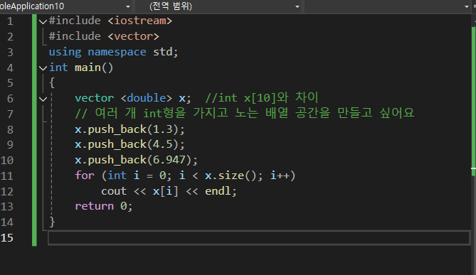 vector이란 자동으로 늘어나는방인 배열이다.